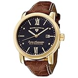 A handsome, elegant watch with high-quality accents, the Swiss Legend Men's Glamorous Collection Automatic Gold-Tone Watch with Winder offers a luminous, midnight blue sandstone dial with silver-toned hands and gold-toned Roman numeral indexes at six and 12 o'clock along with a date display. You can see the watch's inner mechanics with the exhibition-style case back. The gold-toned stainless steel case and circular bezel are durable and sophisticated while the sapphire crystal window provides ultimate scratch resistance. A highlight of the watch is the brown alligator leather strap with deployment clasp. The high-precision, 18-jewel Swiss automatic movement is powered by the movement of your arm so there's no need for a battery. The Swiss Legend Men's Sandstone Collection Automatic Stainless Steel Watch is water resistant to 330 feet (100 meters) and includes a watch winder.
