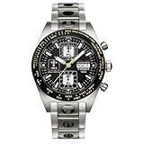 Tissot's PRS 516 Automatic Chronograph Watch is a distinctive timepiece that features superior functionality and water resistance to 330 feet. The brushed stainless steel case exquisitely complements the two-toned, stainless steel bands with push-button clasp closure. The eye-catching carbon fiber dial showcases luminescent hourly indexes, three sub-dials for tracking hours, minutes and seconds, a day-and-date calendar window at the three o'clock position, and a tachymeter around the black bezel for measuring distance. Although the PRS 516 excels as a high-performance timepiece, its handsome styling makes it the perfect timepiece for everyday casual or professional wear.