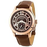 Celebrate the solar eclipse everyday with the Stuhrling Original Men's Classic 'Baily' Automatic Retrograde Rubber Strap Watch. The polished rose-gold-tone stainless steel case and beveled bezel complement the rose-gold-tone accented dial. A handsome brown dial features a dramatic rose-gold-tone eclipse design along with rose-gold-tone Arabic numerals displayed at the four, eight, and 12 o'clock hours. Sharp rose-gold-tone luminous hour, minute, and second hands are accompanied by rose-gold-tone red-tipped date and day hands. The date is displayed in a crescent toward the center of the dial, and a day subdial appears at the six o'clock position. An outside minute track features triangular luminous indices at each hour position. The black pigskin leather strap fits comfortably and fastens securely with a buckle clasp. This timepiece relies on automatic-self-wind movement and is protected by a synthetic sapphire crystal. The watch is water resistant to a depth of 165 feet (50 meters).
