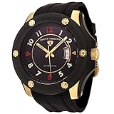 The high-quality Swiss Legend Men's Swiss Automatic Gold-Tone Black Rubber Watch with Winder is a high-performance watch blending elegance with modern style. The case is made from a striking combination of black ion-plated and gold-toned stainless steel for a fresh yet classic look. The bold black dial features distinctive red and silver-toned Arabic numerals along with a sweeping date display showing a three-day range. A unique, textured black ion-plated stainless steel bezel frames the dial and is inset with gold-toned accent studs. The watchband is made from synthetic rubber for ultimate durability and has a buckle clasp. Plus, the sapphire crystal provides superior protection against daily wear and tear. The precision-crafted watch is powered by 18-jewel Swiss automatic movement so there's no need for a battery. It includes a watch winder for additional convenience. Providing a traditional look with modern finishes, the Swiss Legend Men's Swiss Automatic Gold-Tone Black Rubber Watch with Winder is water resistant to 330 feet (100 meters).