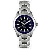 A perfect blend of modern sophistication and sports-inspired styling, this contemporary automatic watch from Tag Heuer's Link series features a flat marine blue dial with faceted steel indexes, a date display, and luminous hands and hour markers for optimal readability. A seconds ruler frames the inner dial, which is surrounded by an outer ring with minute markers in five minute intervals.The dial is housed in 41 mm solid steel case and framed by a round, flat bezel.It presents on a distinctive Y-link bracelet that fastens with a fold over clasp with safety clasp.A convex scratch-resistant sapphire crystal with an anti-reflective coating protects the dial.Automatic movement means that this watch winds itself with the natural motion of your wrist and will never require a battery. Water resistant to 200 meters, this watch is suitable for diving.